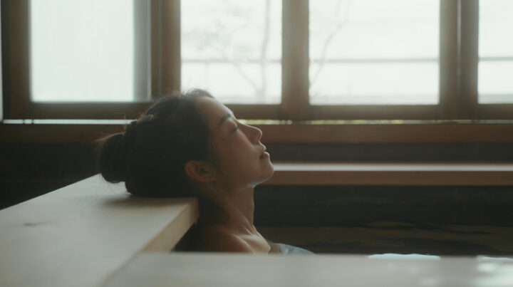 微風徐徐,溫度剛好 躺臥原湯檜木風呂 質地溫文、清朗而澄明